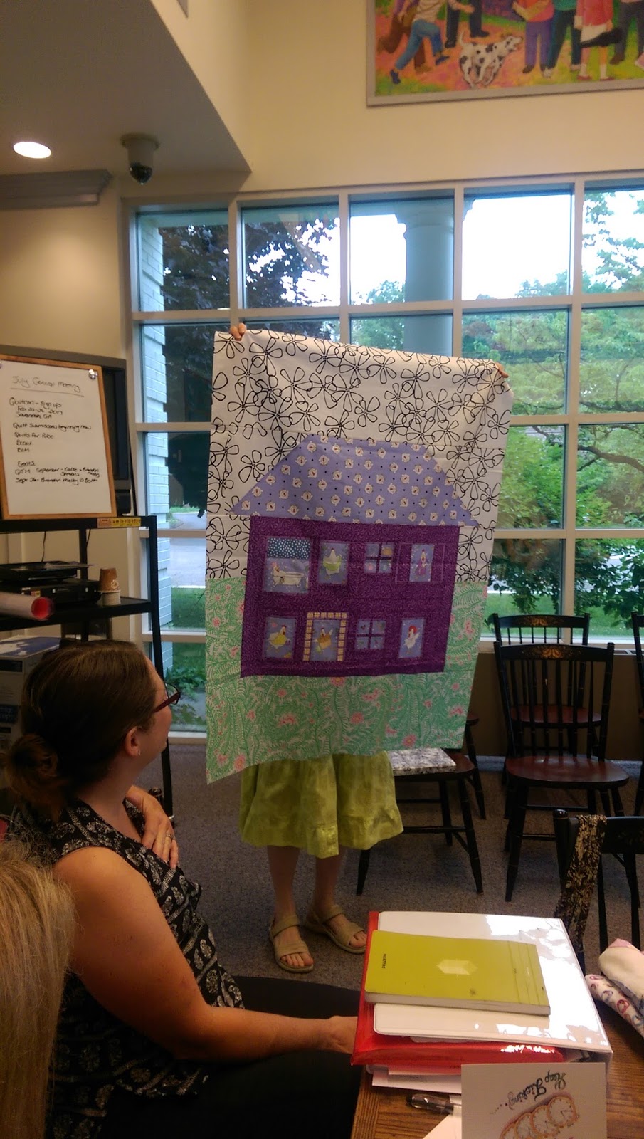 We had a cozy meeting at the Weston Town Hall in July. We discussed our upcoming fabric dying workshop with Richard Killeaney and discussed the details for our September 20th speaker Heather Kojan. Mostly though, we showed and talked quilts.
